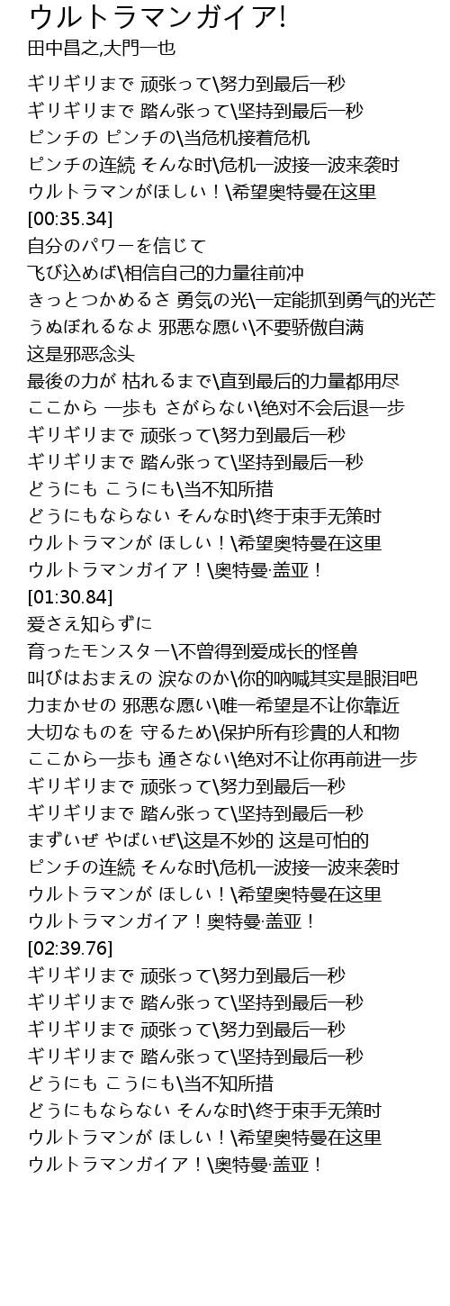 | [02:36.61] | ウルトラマンガイア!奥特曼·盖亚! |