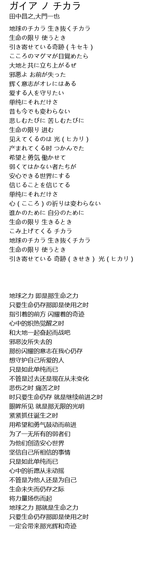 | [02:40.000] | 地球のチカラ 生き抜くチカラ |