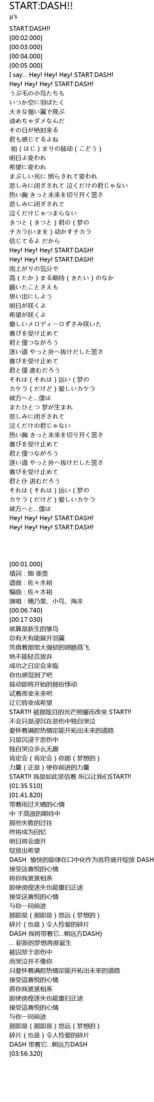 | [04:02.500] | Hey! Hey! Hey! START:DASH! |