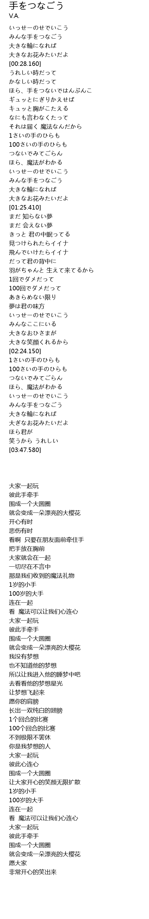 | [00:37.820] | ほら、手をつないではんぶんこ |
