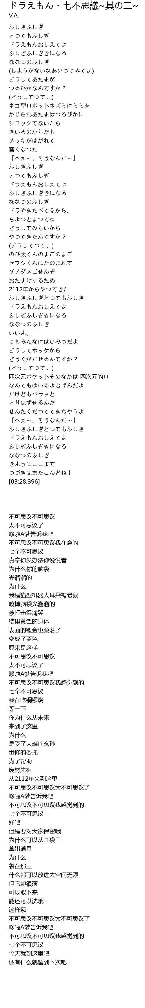 | [02:49.856] | 四次元ポケッ卜そのなかは 四次元的ロ |