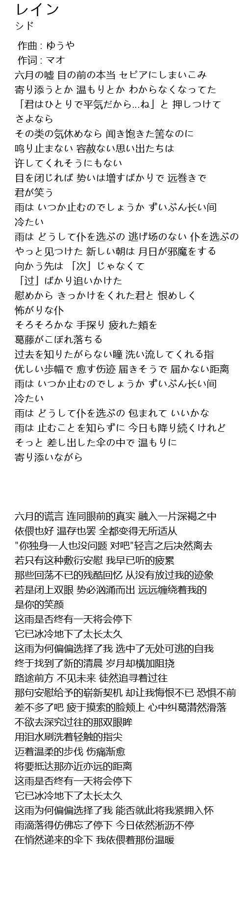 | [01:35.340] | 雨は どうして仆を选ぶの 逃げ场のない 仆を选ぶの |