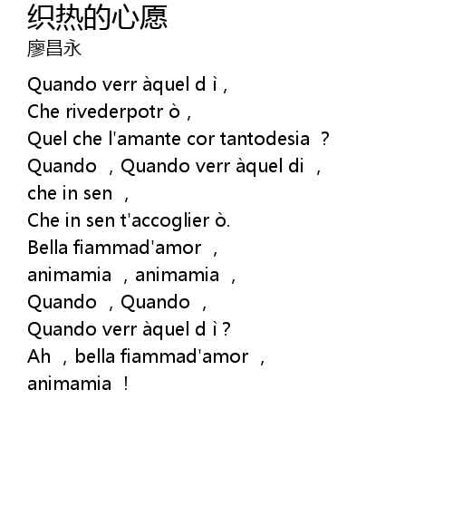 | [01:02.407] | Quando , Quando verr à quel di , |
