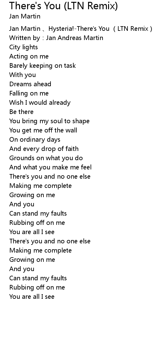 | [00:00.40] | Jan Martin Hysteria! There' s You LTN Remix |