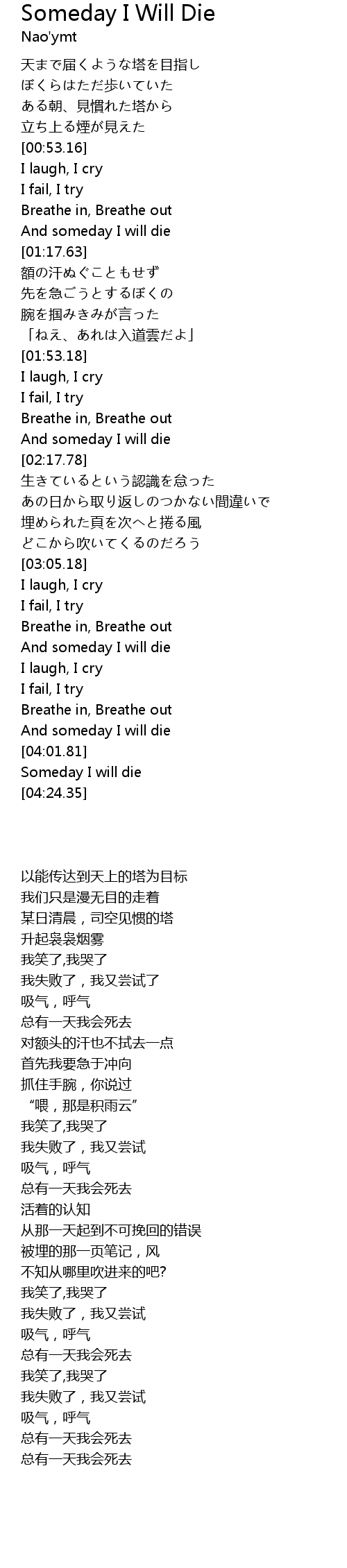 - Someday I Will Die