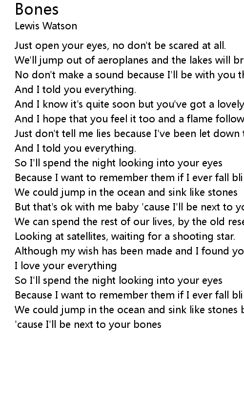 We could jump in the ocean and sink like stones but that's ok with me baby 'cause I'll be next to your bones