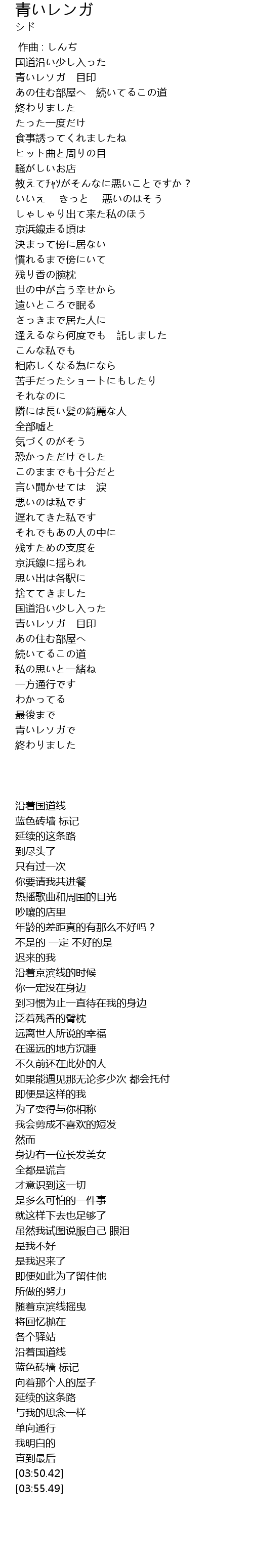 | [03:50.42] | 青いレソガで |