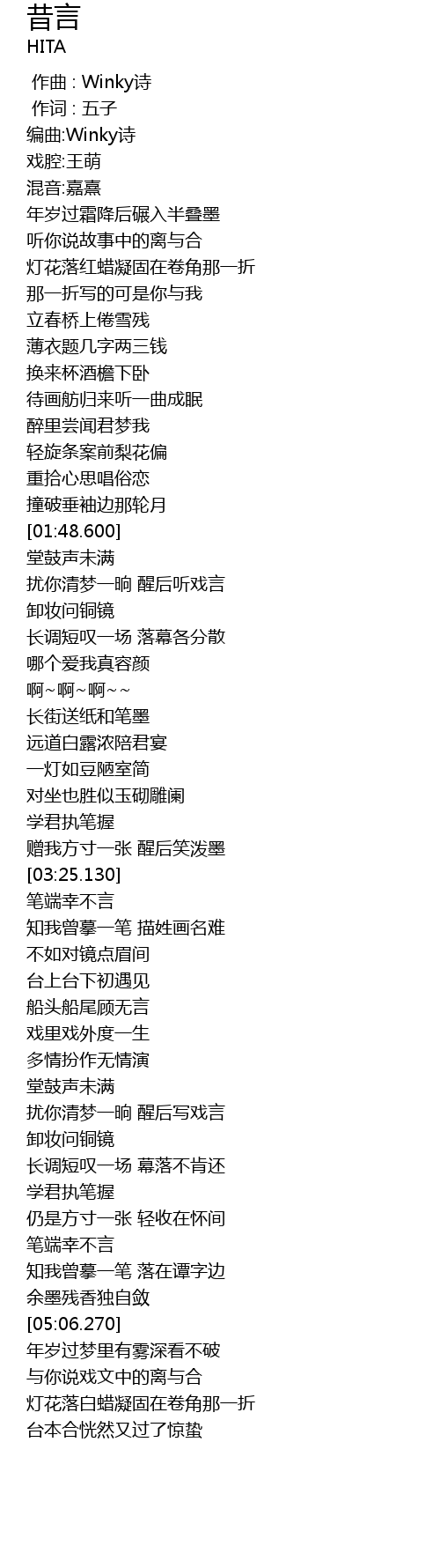 | [01:52.140] | 扰你清梦一晌 醒后听戏言 |