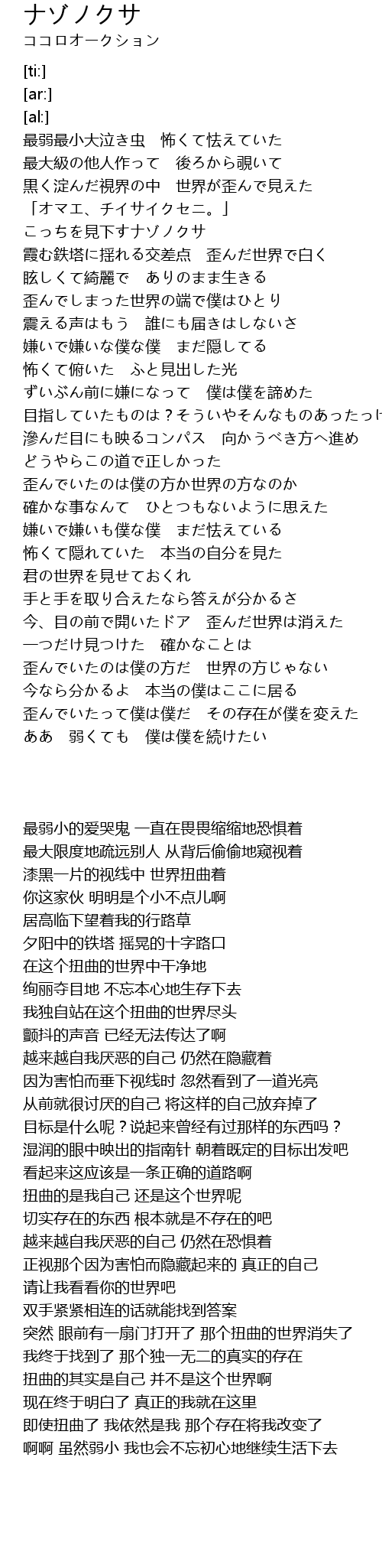 | [01:03.36] | 歪んでしまった世界の端で僕はひとり |