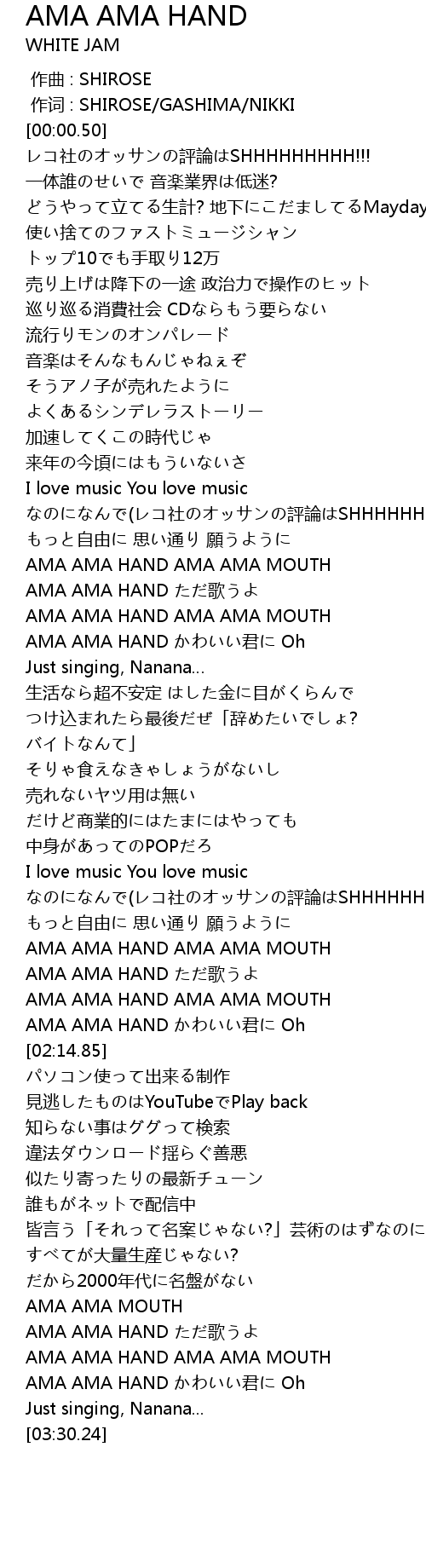 | [03:01.29] | AMA AMA HAND AMA AMA MOUTH |