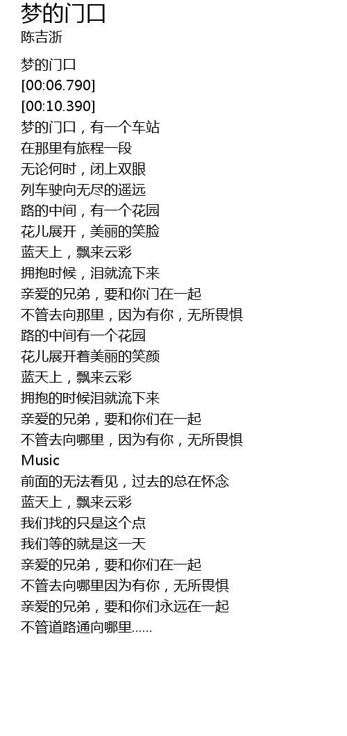 | [00:14.560] | 梦的门口,有一个车站 |