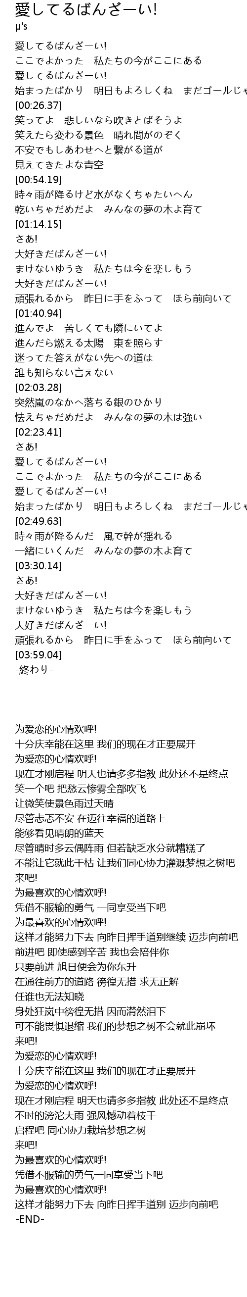 | [03:33.99] | まけないゆうき 私たちは今を楽しもう |