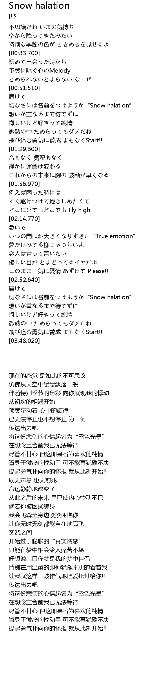 | [03:11.970] | 切なさには名前をつけようか“Snow halation” |