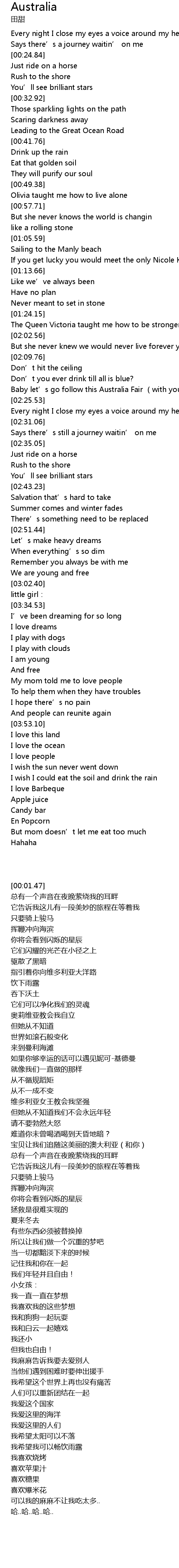 | [02:18.98] | Baby let’s go follow this Australia Fair (with you) |