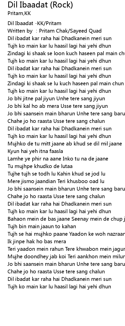 | [00:00.172] | Dil Ibaadat -KK/Pritam |