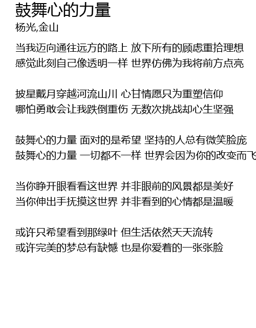 | 鼓舞心的力量 面对的是希望 坚持的人总有微笑脸庞 | |