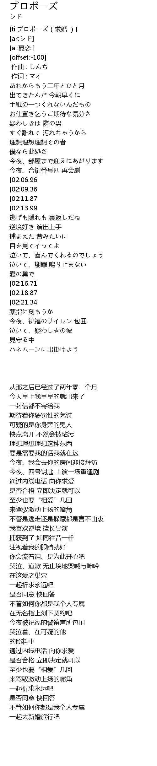 | [00:56.50][02:06.96] | インターフォン越し 求愛です |