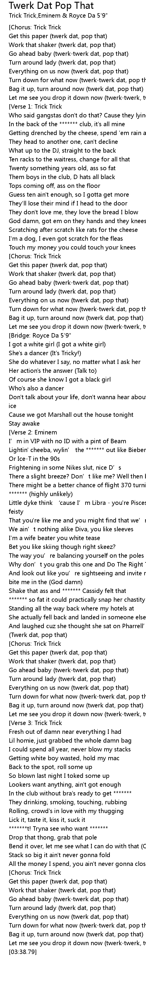 | [03:23.80] | Go ahead baby (twerk-twerk dat, pop that) |