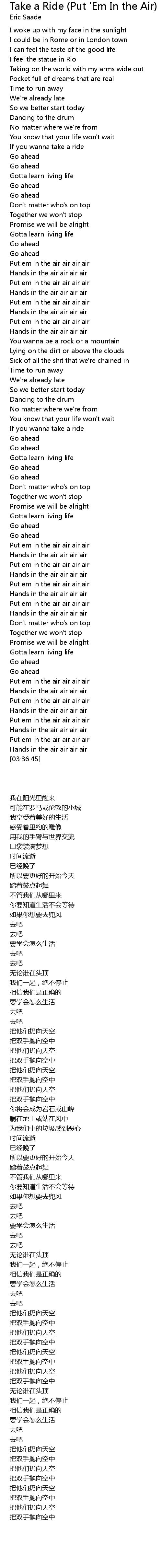 Take a Ride (Put 'Em In the Air)  Lyrics