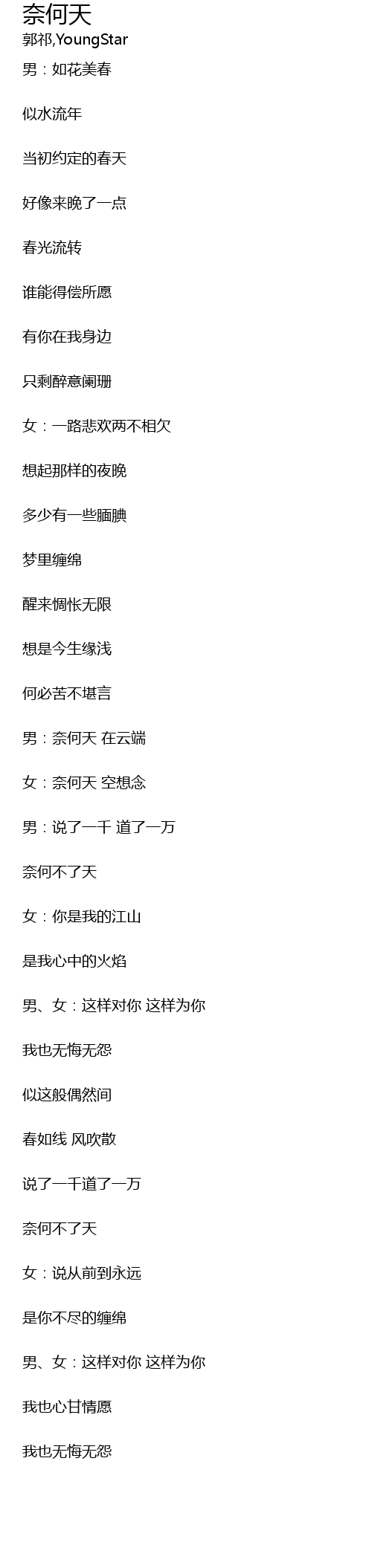 | 男:奈何天 在云端 | |
