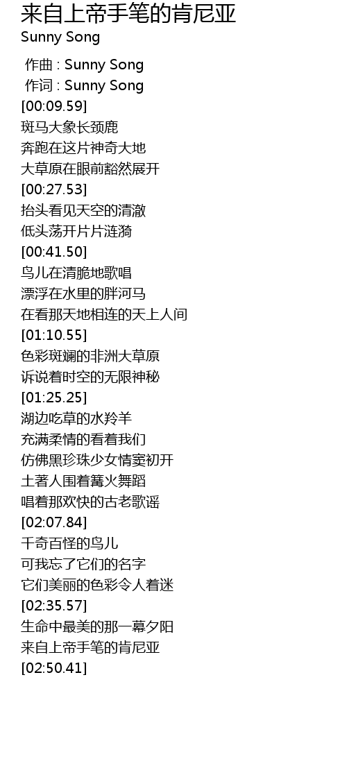 | [02:43.26] | 来自上帝手笔的肯尼亚 |