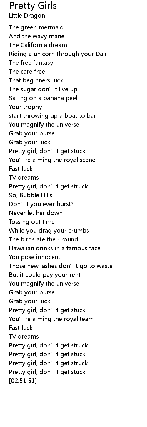 | [00:55.84] | Pretty girl, don’t get stuck |