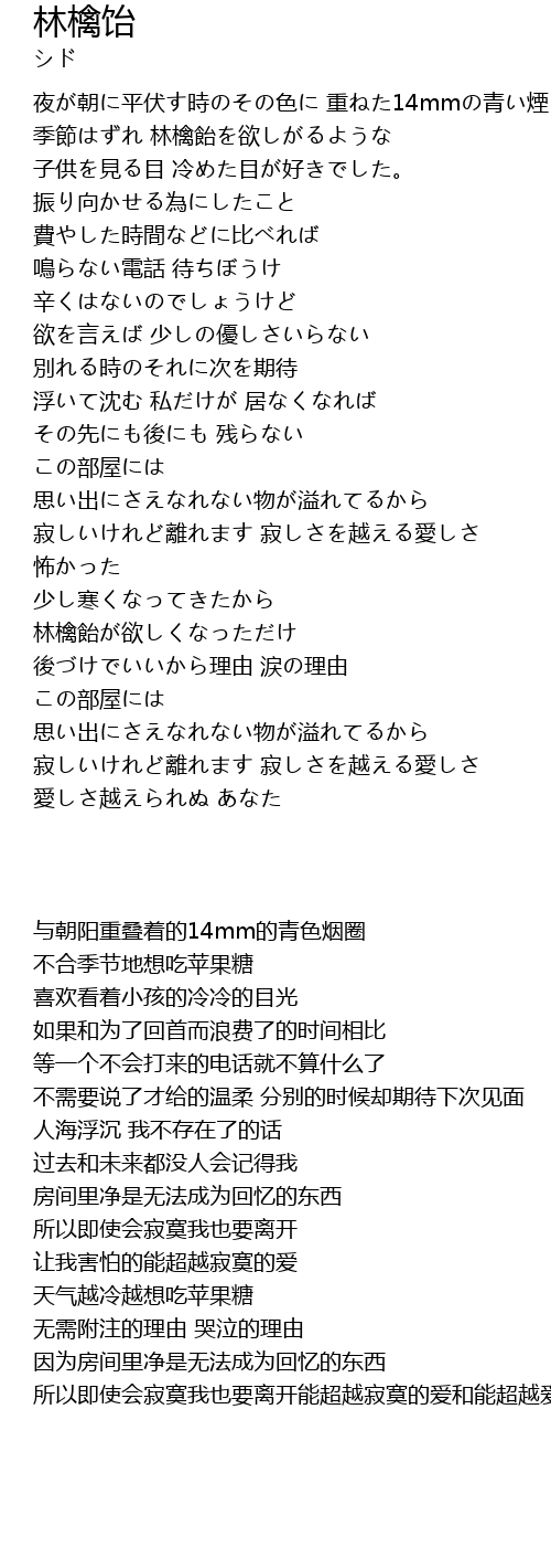 | [02:38.500] | 少し寒くなってきたから 林檎飴が欲しくなっただけ |