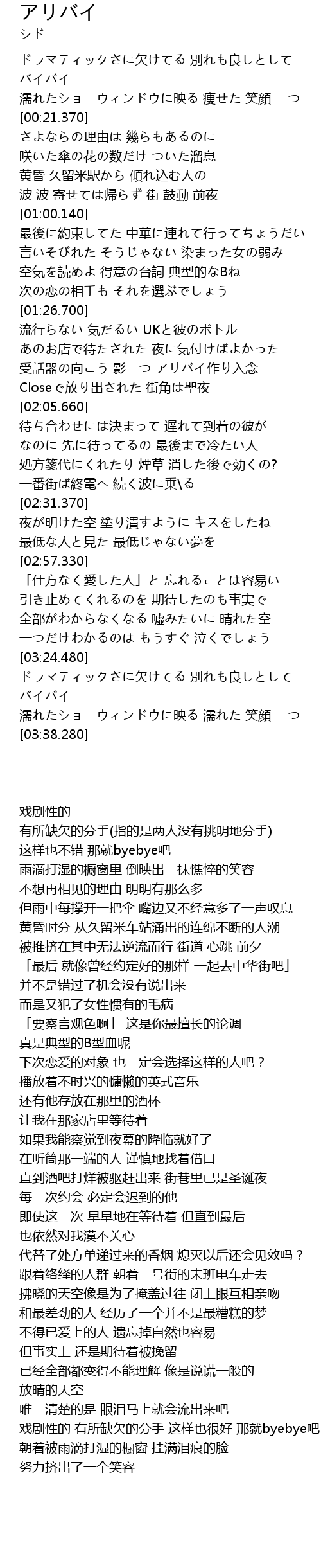 | [00:07.530] | ドラマティックさに欠けてる 別れも良しとして バイバイ |