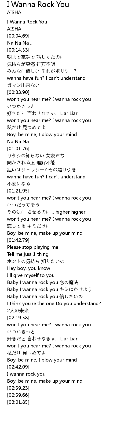 | [02:19.91] | won't you hear me? I wanna rock you |
