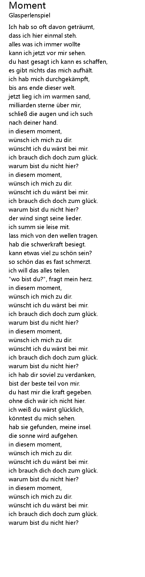| " wo bist du?", fragt mein herz. | |