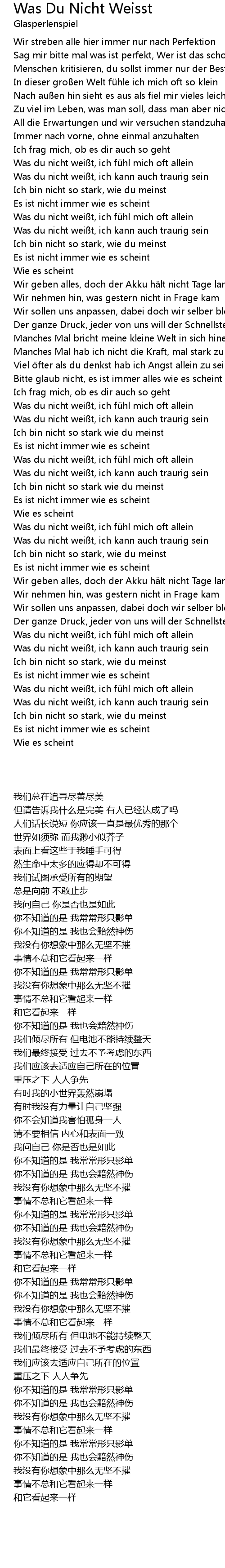 | [02:10.00] | Was du nicht wei t, ich fü hl mich oft allein |