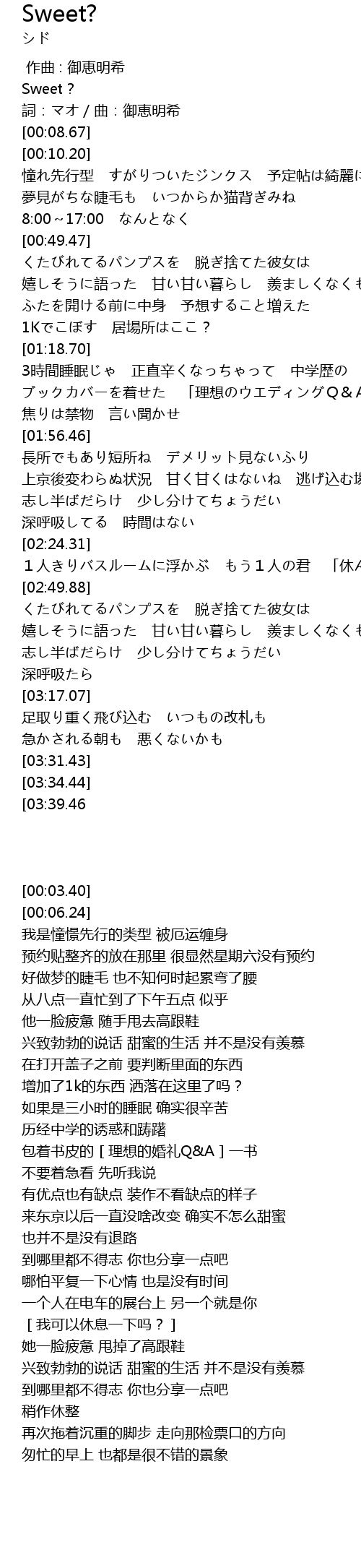 | [00:03.40] | Sweet? |