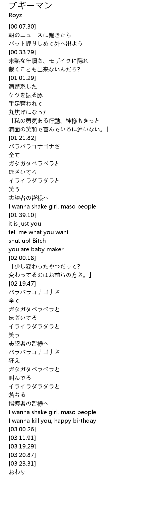 | [02:16.38] | 変わってるのはお前らの方さ。」 |