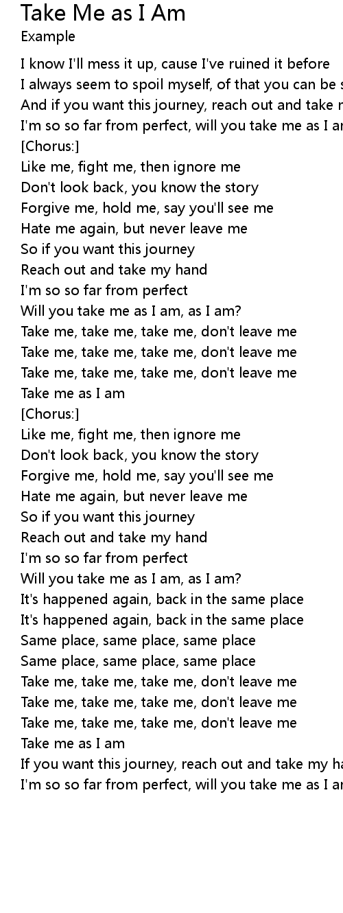 I'm so so far from perfect, will you take me as I am, as I am? |