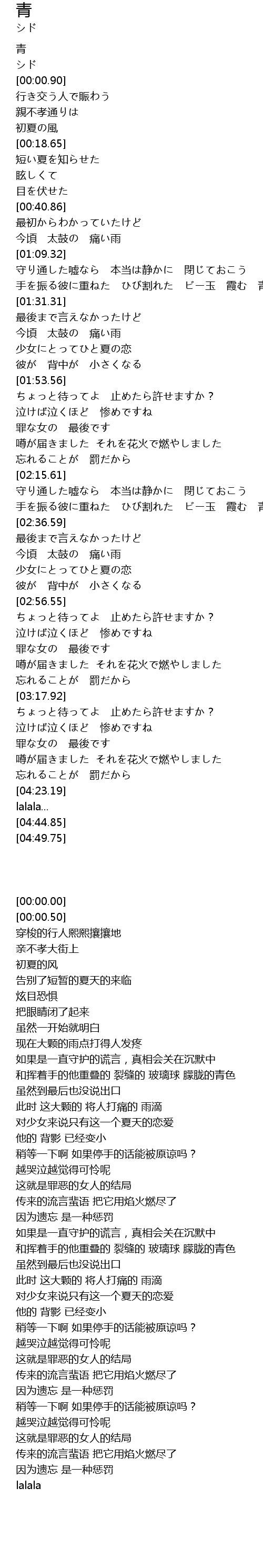 | [02:27.03] | 手を振る彼に重ねた ひび割れた ビー玉 霞む 青 |