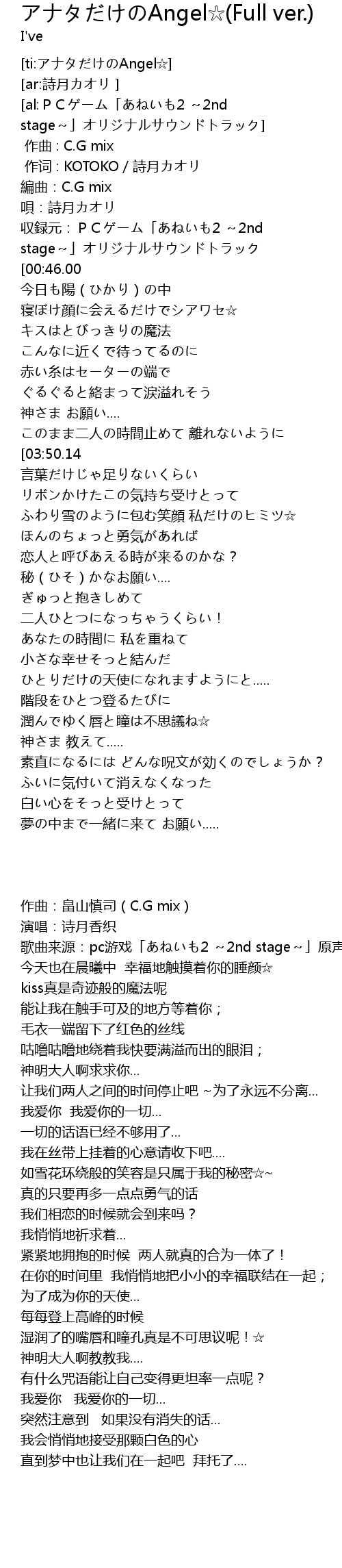 | [ti:アナタだけのAngel☆] | |