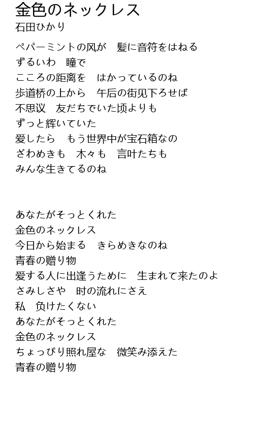 | Song | 金色のネックレス |