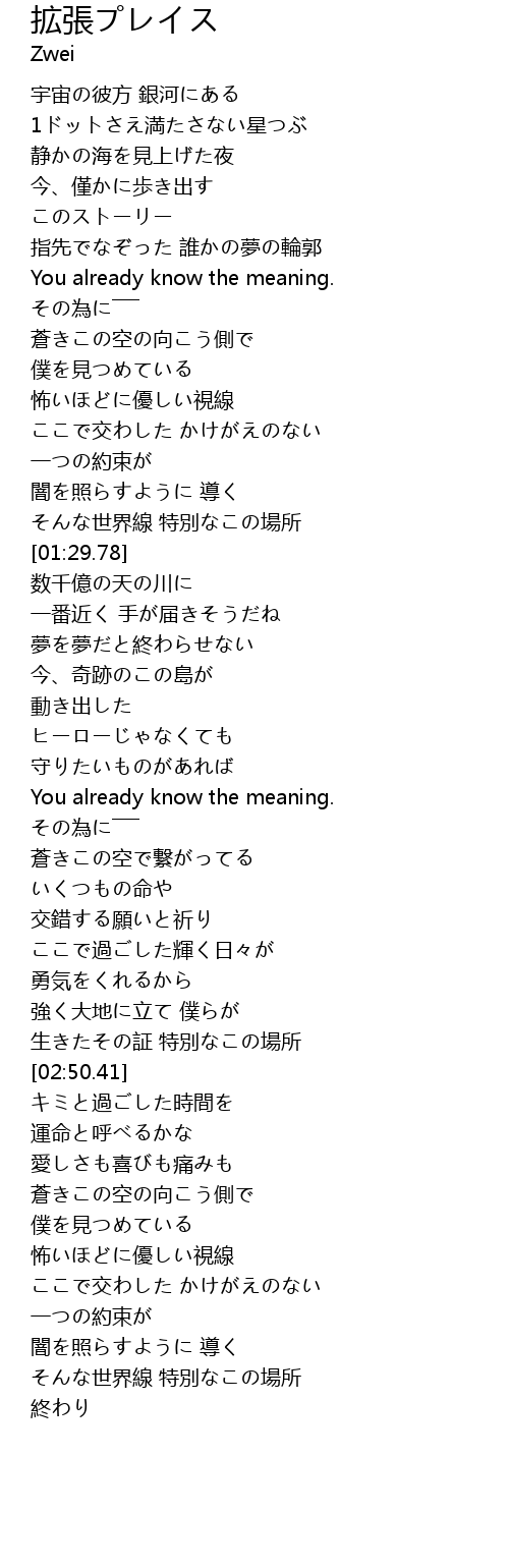 | [02:42.99] | 生きたその証 特別なこの場所 |