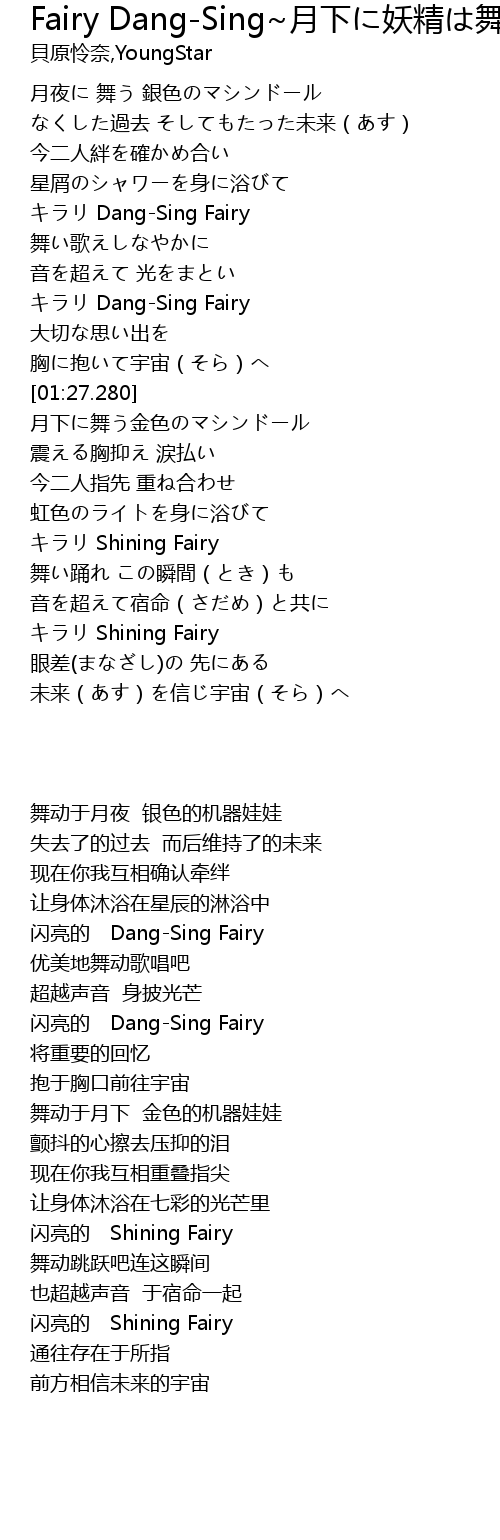 | [01:12.390] | キラリ Dang-Sing Fairy |
