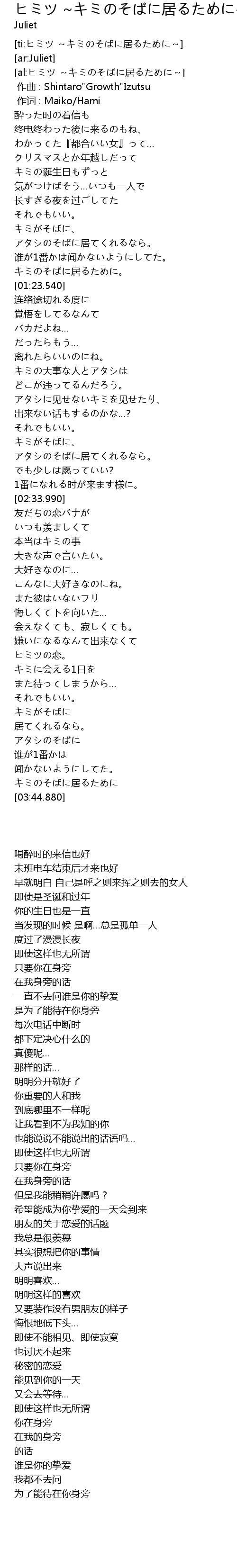 | [ti:ヒミツ ~キミのそばに居るために~] | |