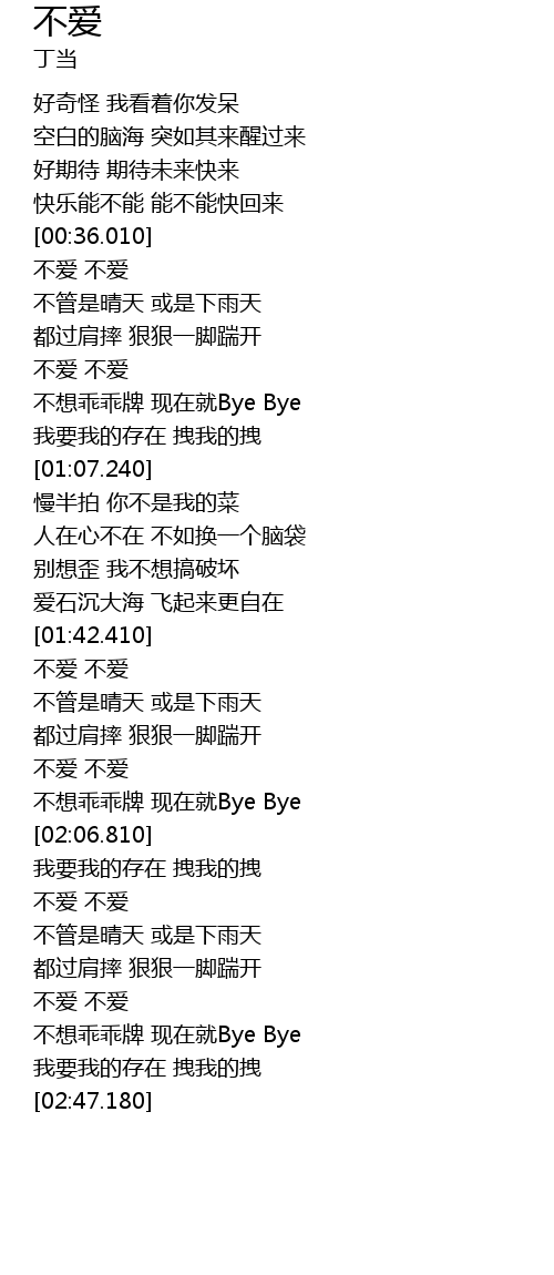 | [00:55.420] | 不想乖乖牌 现在就Bye Bye |