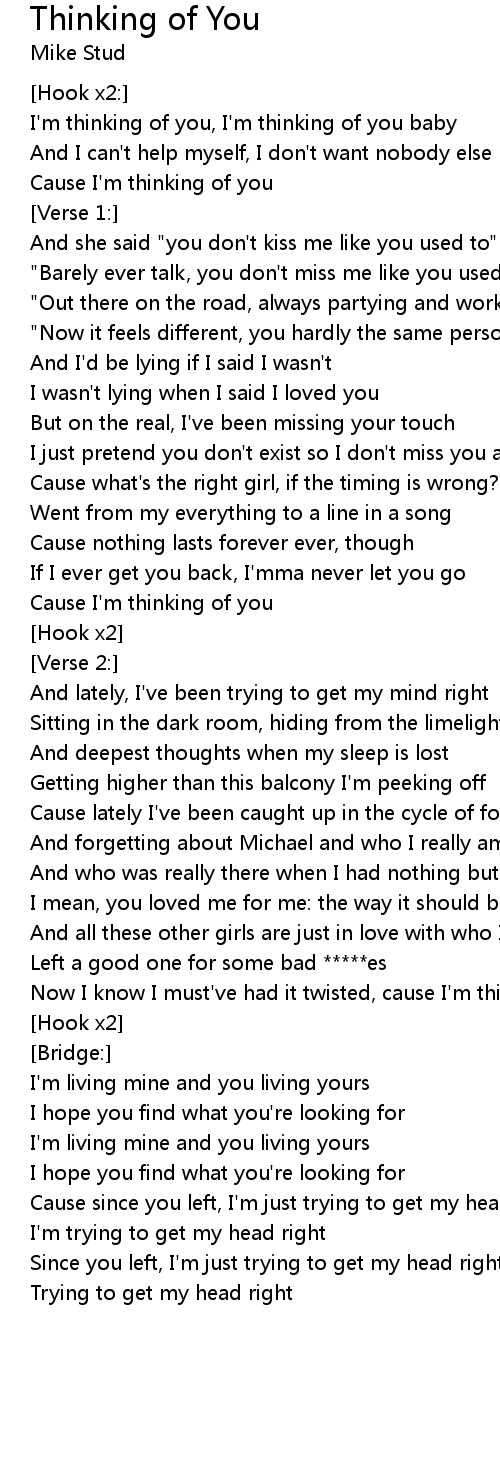 | Now I know I must've had it twisted, cause I'm thinking of you | |