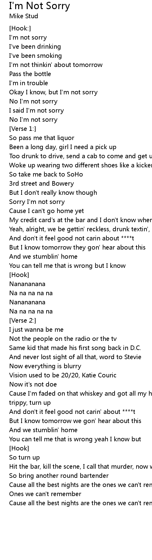 | Yeah, alright, we be gettin' reckless, drunk textin', up late, **** breakfast | |