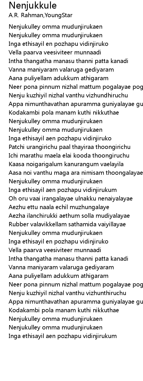 Nenjukulley omma mudunjirukaen |