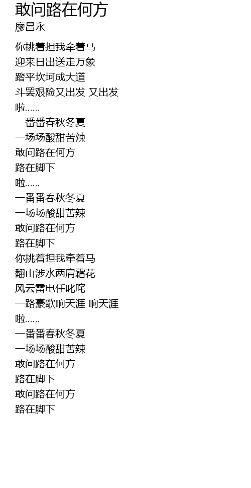 | [03:25.030] | gǎn wèn lù zài hé fāng |