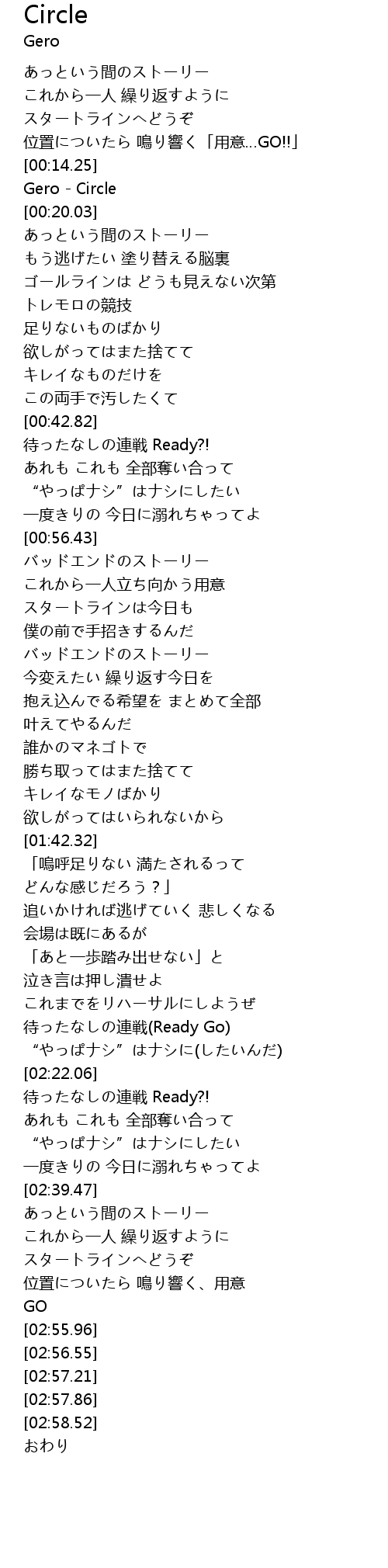 | [00:15.20] | Gero Circle |