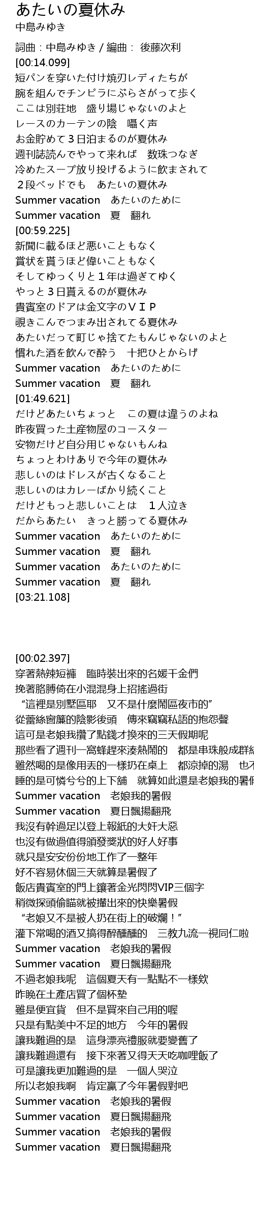 | [00:54.445] | Summer vacation 夏 翻れ |