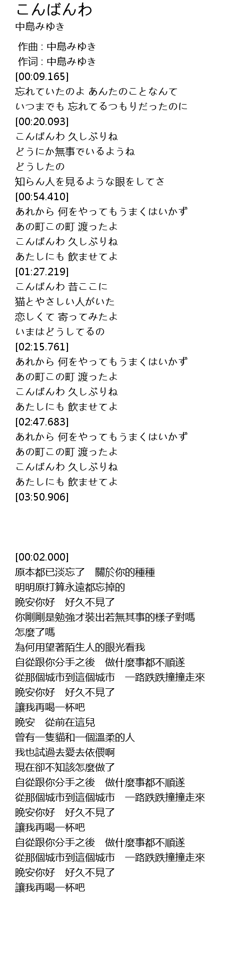 作词 : 中島みゆき |