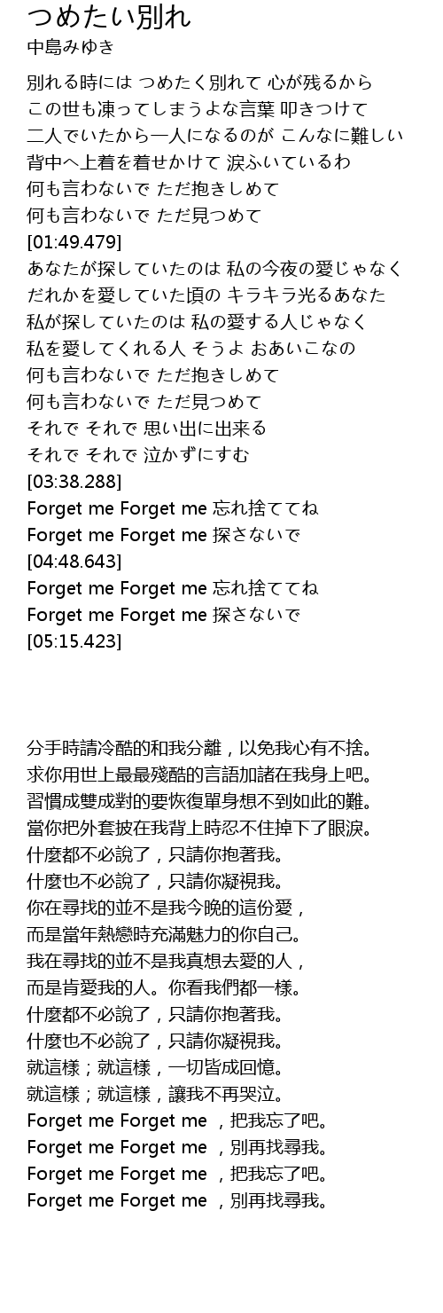 | [05:00.925] | Forget me Forget me tan |