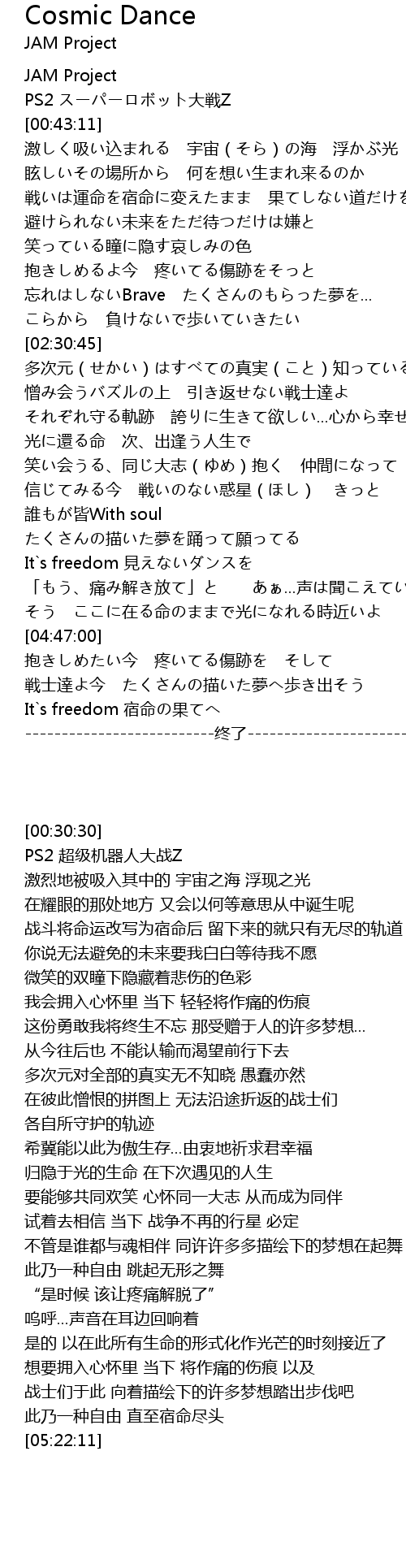 | [01:29:29] | 戦いは運命を宿命に変えたまま 果てしない道だけを残す |
